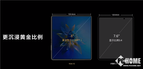 其次在显示屏上,Mate X2展开后是8寸大屏,显示比例是8:7.1,号称黄金比例,更适合大屏阅读。