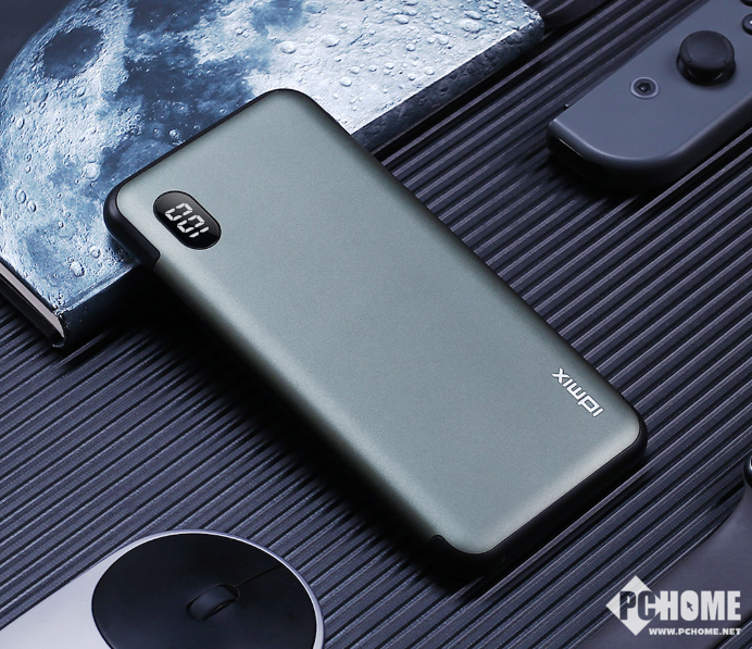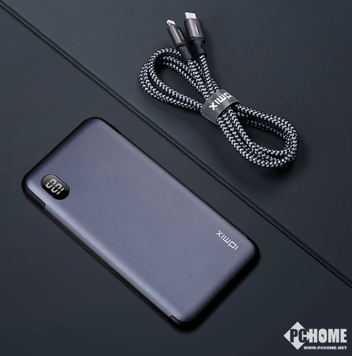 该充电宝采用人体工学的双面弧形设计,厚度仅有12.8mm,正面搭载了一块小型显示屏,能够实时显示充电宝的剩余电量。