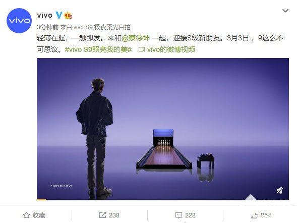 视频中,蔡徐坤手持“9号保龄球”,从非常狭窄的手机侧边一般轻薄的轨道上一击必中,意义不言自明,强烈暗示vivo S9的垂直窄边框特性。这样看来,vivo S9的工艺设计细节以及握持手感还是非常值得期待的。此前,在三位代言人出镜的预热视频中,vivo S9设计细节就已初见端倪。其中,一体化的垂直边框最为亮眼,中框区域更加棱角分明,手机的厚度进一步缩减,传承了vivo S系列轻薄自拍旗舰的传统。
