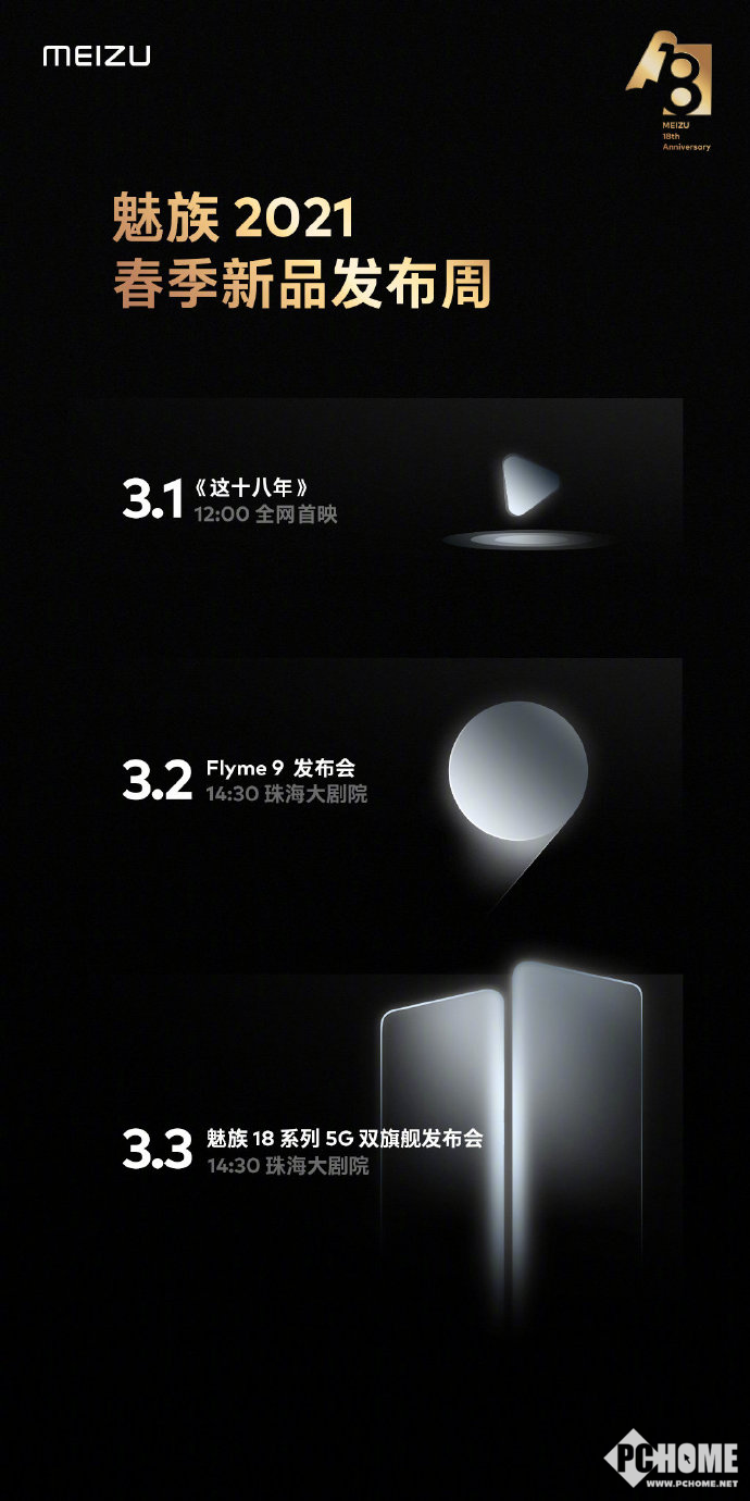此次2021春季新品发布周将于3月1日至3月3日举行,其中,魅族将在3月1日进行18周年宣传片《这十八年》全网首映。