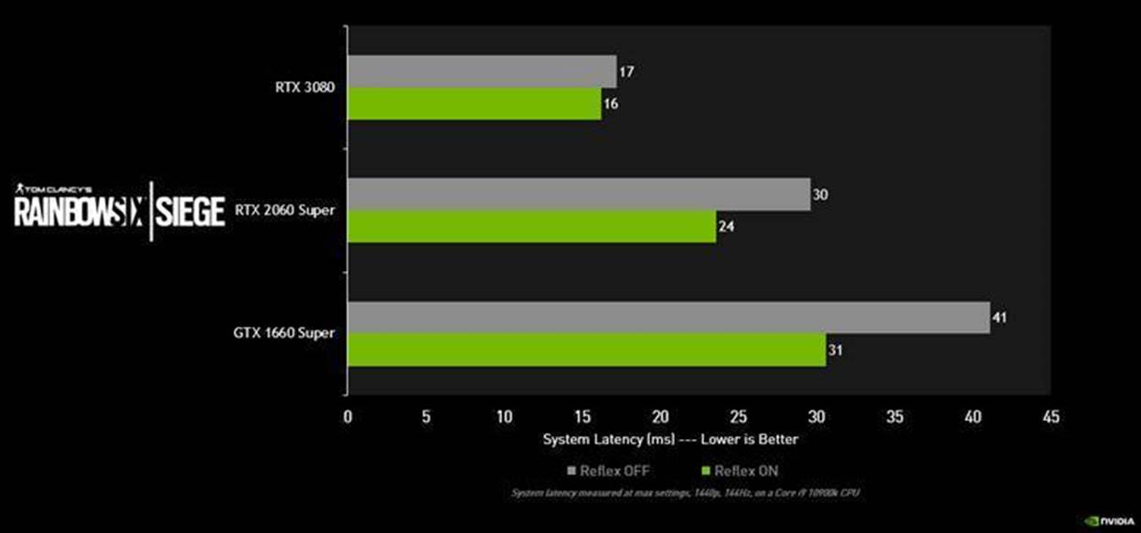 NVIDIA表示,已经购买了GeForce 10系列或更新一代GPU的《彩虹六号:围攻》(Rainbow Six Siege)玩家,现在便可下载公开测试服,运行Vulkan版本,抢先提前体验NVIDIA Reflex。游戏玩家只需打开显示器菜单,开启NVIDIA Reflex低延迟。借助NVIDIA Reflex,系统延迟大大降低,更容易瞄准敌人,并提升PC的响应速度。