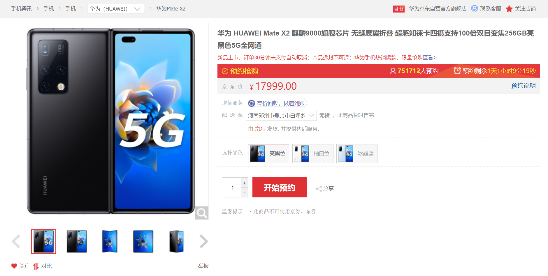 华为Mate X2将会在2月25日正式首销,起售价17999元,目前京东的华为Mate X2预约量已经突破75W,可见大家对它的期待程度。