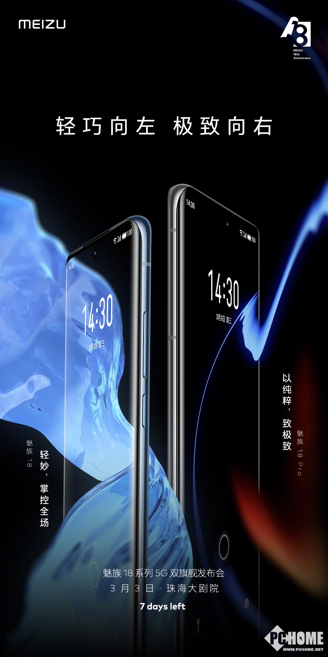 魅族18系列5G新机定于3月3日在珠海大剧院发布,值得一提的是,3月2日14点30分,主打“轻新知意 灵感在握”Flyme9系统也将登场。