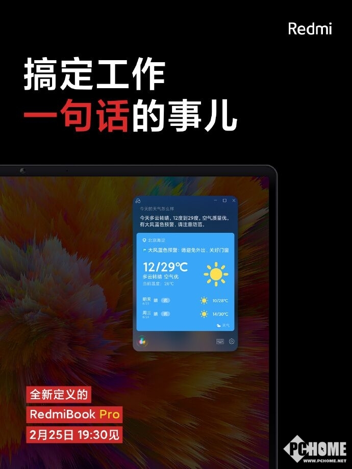 在Redmi明日的新品发布会上,Redmi还会为消费者们带来RedmiBook Pro。今天,Redmi公布了它的新亮点:首次搭载小爱同学,一句话搞定生活、工作。