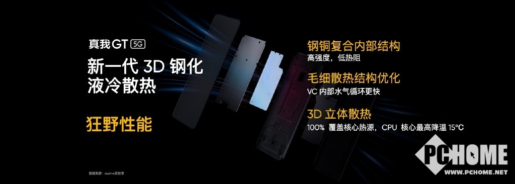 为了能发挥出骁龙888的极限性能,realme GT还专门研发了新一代散热技术VC boost——3D钢化液冷散热,在材质和结构上进行了双重优化,可以100%覆盖核心热源,CPU核心最高降温可达15℃。