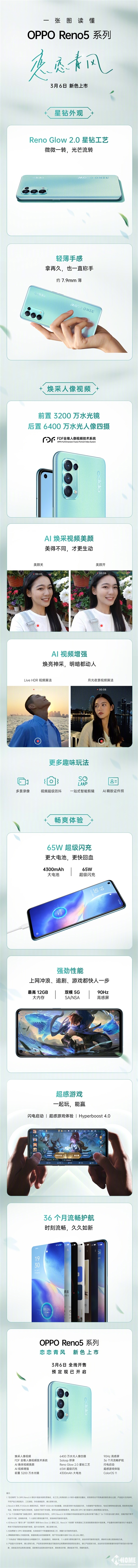 今日,OPPO宣布Reno5系列新品Reno5 K恋恋青风将于3月6日正式发售,价格尚未公布。