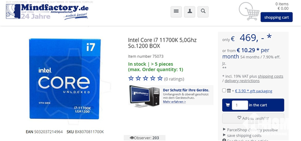 相比该店酷睿i7-10700K处理器的价格,酷睿i7-10700K要贵出152欧元,溢价48%,实在是夸张,价格都能追上旗舰级的酷睿i9-10900K了,后者不过473欧元。