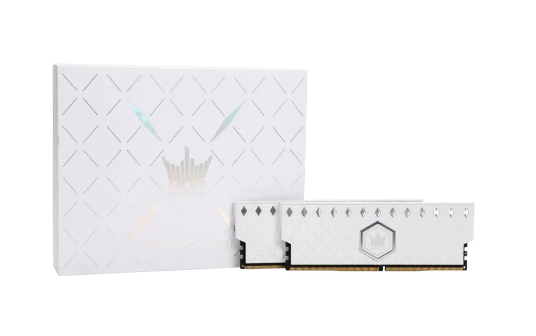 全新皑钻16GB*2套装版,经磨砂处理过的银白色HOF logo外部镶上一层银边框,与此前8GB*2套装版的金色外框作明显区分,整根内存条的白色基调也更加贴合名人堂家族的白色基调。