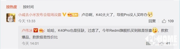 之前卢伟冰就指出,今年芯片极其缺货,再加上Redmi K40系列极具竞争力的价格,销量不是问题。