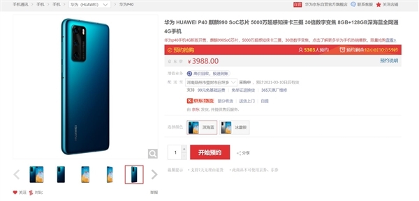 3988元!华为P40 4G版上市:好评率100%