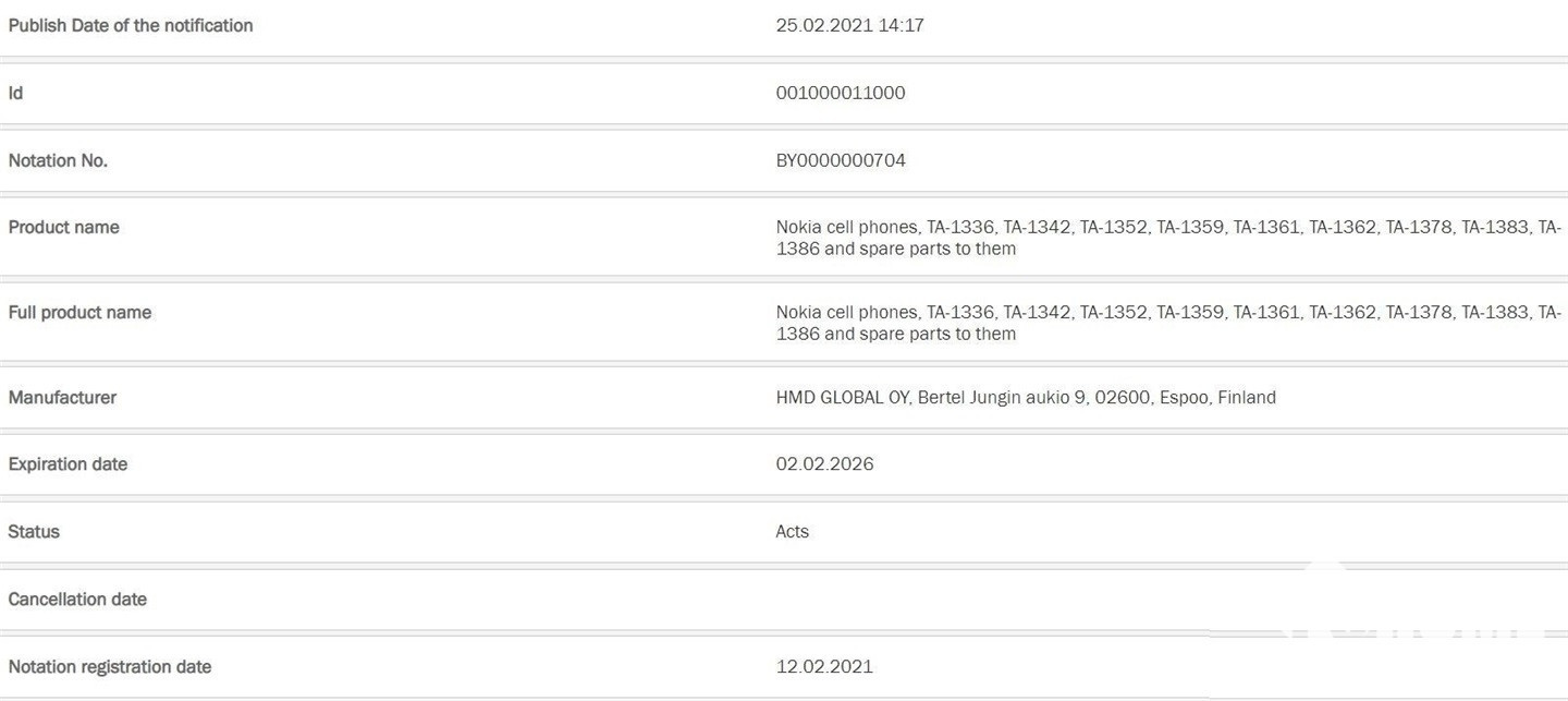 之前一款型号为TA-1336的诺基亚新机通过了认证,现在俄罗斯认证平台出现了8款新的诺基亚手机,型号分别为TA-1342、TA-1352、TA-1359、TA-1361、TA-1362、TA-1378、TA-1383、TA-1386,这表明HMD或为不久后到来的诺基亚大型发布会做准备。在这9款机型中有两款通过了TÜV认证。