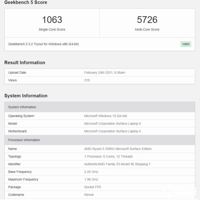 另一个基准跑分显示,它运行定制的 AMD 处理器,称为 “微软 Surface 版本”。单核跑分为 1063,多核跑分为 5726。