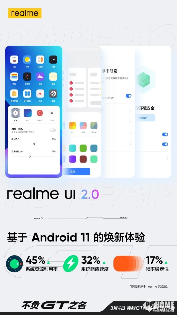 据介绍,realme UI 2.0将带来系统性能的全面提升,相比与老版本的系统资源利用率提升45%、系统响应速度提升32%、帧率稳定性提升17%。