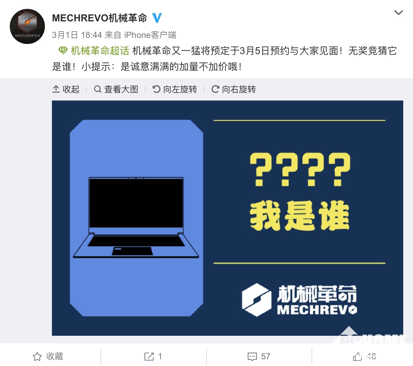 据机械革命官方公布的消息,将于3月5日发布新款笔记本电脑,并且还表示加量不加价。