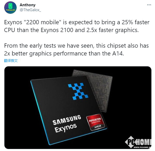 另外,Exynos 2200将有两种版本,一是针对安卓手机,二是针对笔记本,后者可能类似高通的cx系列,频率、功耗更加开放,GPU性能说不定能直逼甚至领先AMD APU。