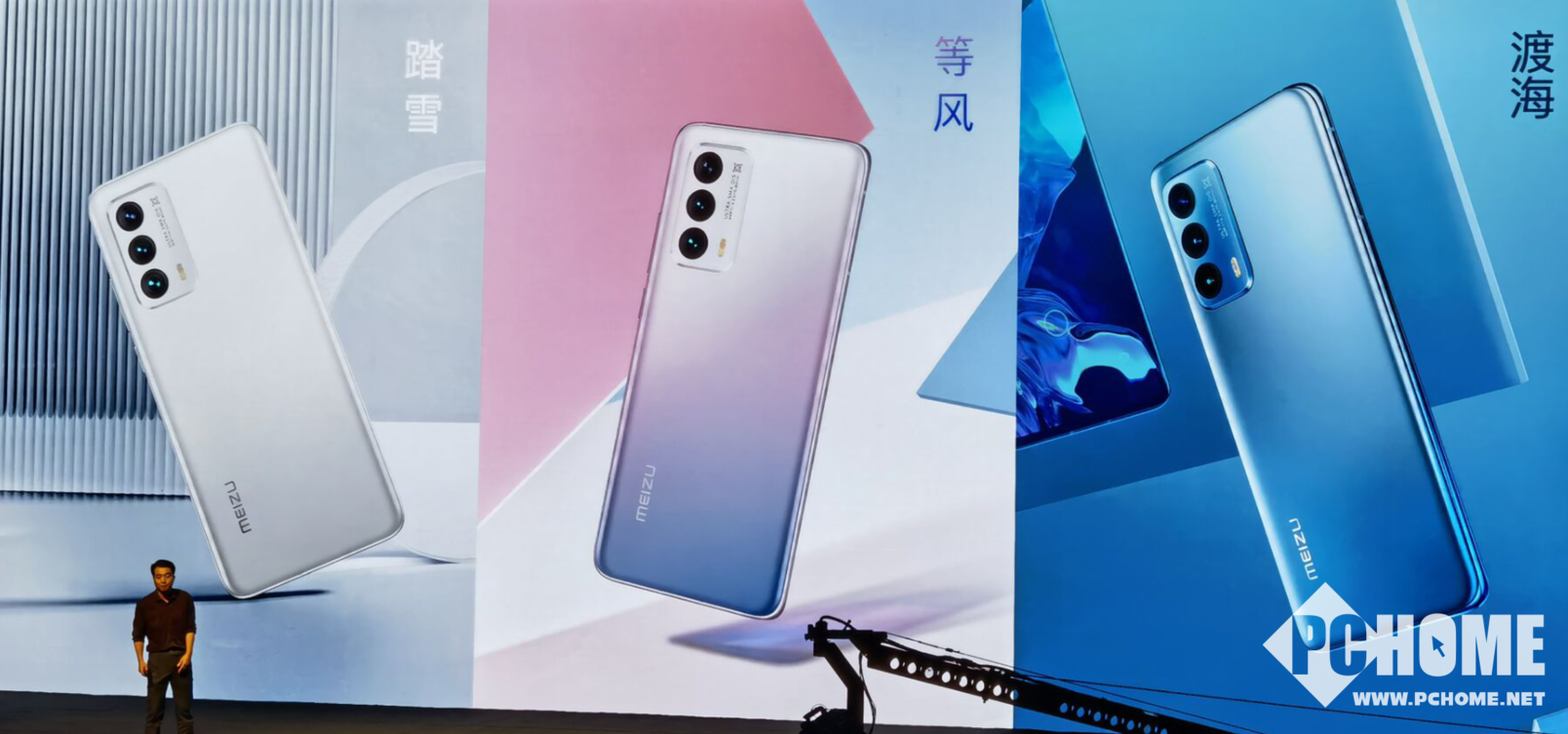 外观方面,魅族18提供踏雪/等⻛/渡海三种选择。