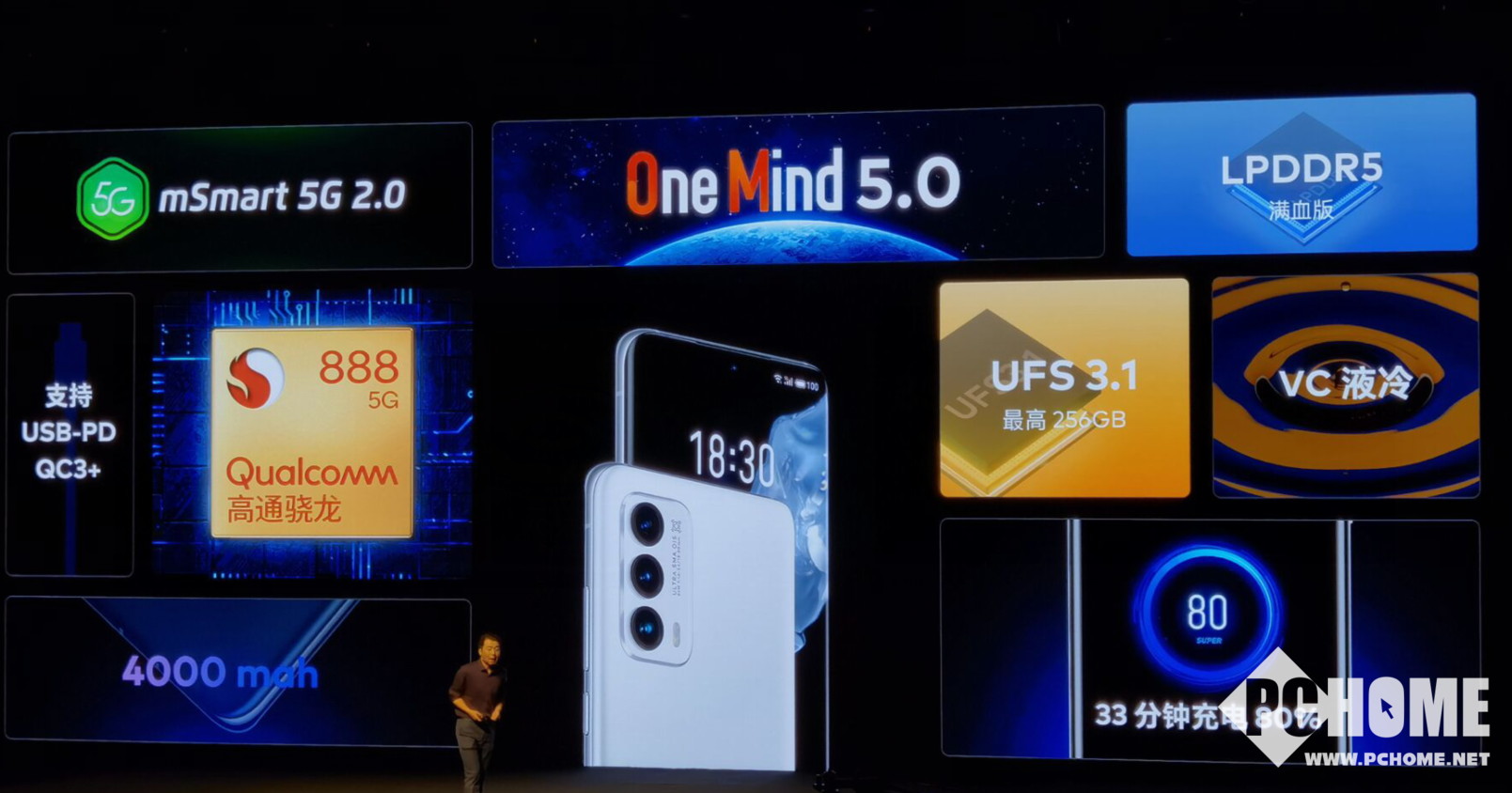 性能方面,魅族18升级了骁龙888,最高12GB LPPD5内存、256GB UFS 3.1闪存,同时配备大面积VC液冷散热器。
