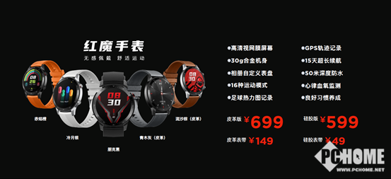 3月4日晚,红魔正式发布了旗下首款智能手表产品--红魔手表,硅胶版售价599元,皮革版售价699元,单独购买硅胶/皮革表带价格分别为49元和149元。