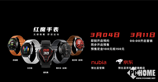 红魔手表将于3月4日开启预售,3月11日0点正式开售。预售期间缴纳100元定金可抵扣150元,非常超值。