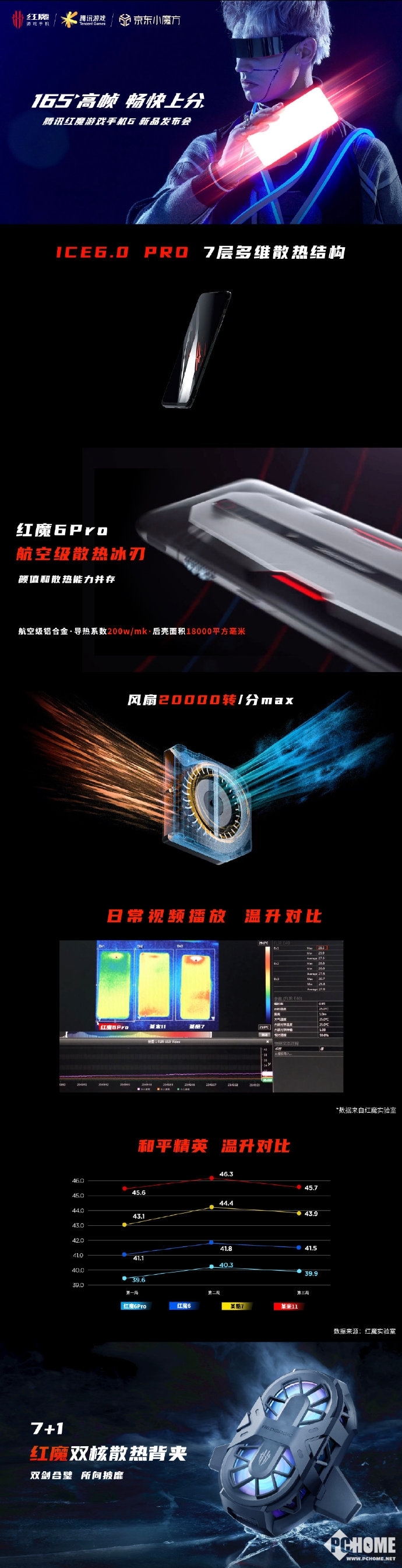 3月4日晚,红魔游戏手机6正式发布,这款游戏手机跟腾讯达成了战略合作,针对腾讯游戏还有专门的优化,而本身配置方面,除了升级骁龙888之外,这款手机还配备了6.8寸165Hz超竞屏,ICE6.0 6层散热系统,用上了18000转的离心风扇,散热效果一流。