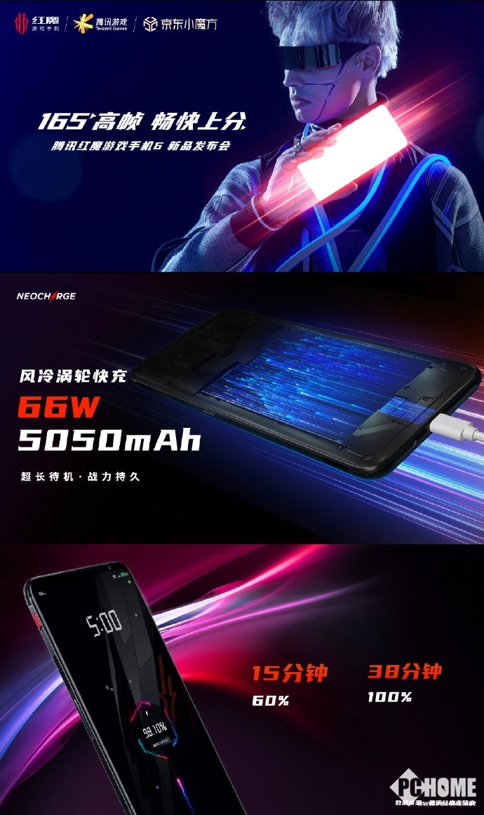 电池方面,红魔游戏手机6配备了5050mAh电池大电池,是2021年容量最大的5G旗舰机,还标配66W快充,38分钟充满。