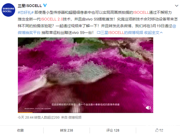 三星的英文新闻中没有提及ISOCELL 2.0传感器由谁首发,不过中文官微已经确认了就是vivo S9首发,不过是用在了前置摄像头上,GH1传感器,4400万像素。