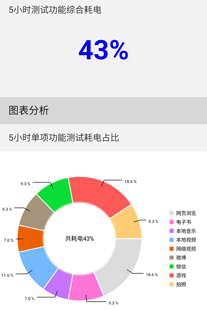 腾讯ROG游戏手机5的续航能力,一直是游戏手机里的标杆,这一次也不例外。该机搭载了3000毫安时双电芯组合,电池总容量仍旧是6000毫安时。通过五小时综合模拟续航测试,腾讯ROG游戏手机5仅耗电43%,这对于一款大屏、双扬声器的游戏手机来说,实属不易。