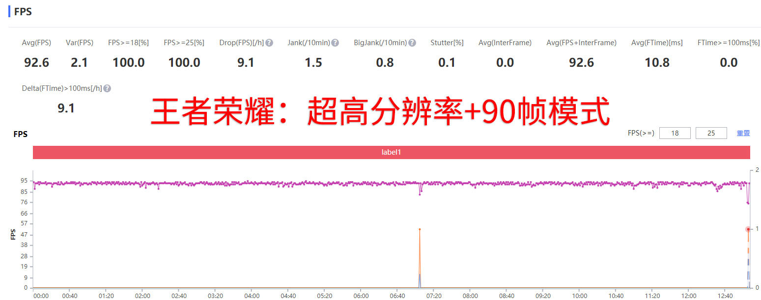 首先还是最基础的王者荣耀手机,虽然在开放90帧模式后,王者荣耀对于手机的压力有所增加,但考虑到这块游戏的推出时间以及长期的优化,绝大部分手机都是可以很好的应对。腾讯ROG游戏手机5的游戏表现非常出色,整局游戏只有一次波动情况,即便是多人团战也没有低过80帧,全程都保持在90帧以上的满帧运行。