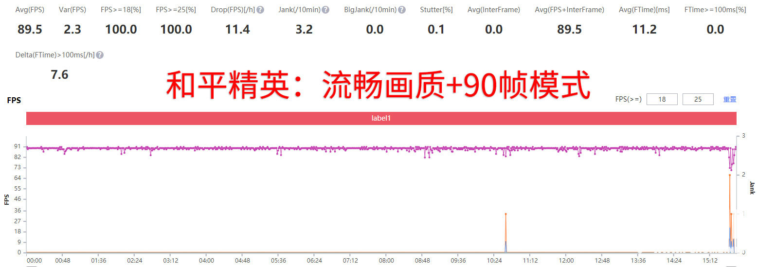 另一款国民手游和平精英表现也基本相似,在出入房屋时帧率会有小幅波动,但整体非常优秀,平均89.5的高帧率让笔者在激烈对战时充满信心。