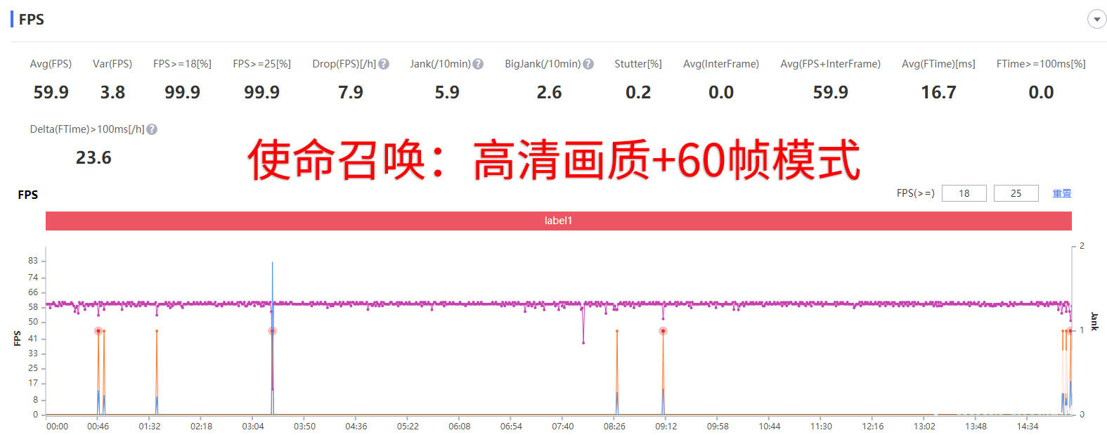 使命召唤手游是近期非常热门的一款射击类游戏,笔者进行了一把使命战场模式试玩,该模式和吃鸡类似,不过整体画面比和平精英要强不少。可以看到在最高画质下,游戏的平均帧率达到了59.9帧,几次小波动并不是发热和性能造成,游戏时也没有卡顿的场景出现。猜测应该是游戏上线时间不长,随着游戏后期的不断优化,稳定性肯定还会进一步提升。