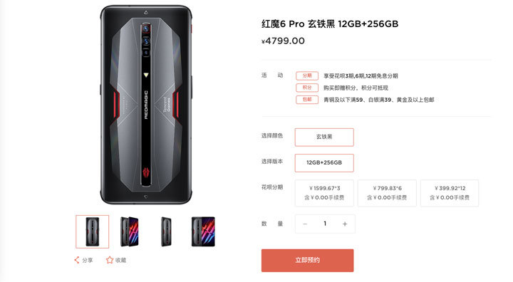 据悉,腾讯红魔游戏手机6 Pro 12+128GB版本售4399元,12+256GB版本售4799元,16+256GB版本售5299元,氘锋透明版不仅有用16+256GB版本外,还全球球首发18+512GB内存,两大版本分别售5599元和6599元。腾讯红魔游戏手机6 Pro将于3月11号10:00开启首销,目前已经开启预约预售,已有超150万用户参与预约,感兴趣的朋友可以前往努比亚官网或京东旗舰店购买。值得一提的是,预售用户可享12期免息分期和半年碎屏险福利,用户购机即可获赠价值666元的专属腾讯游戏礼包,千万不要错过啊!