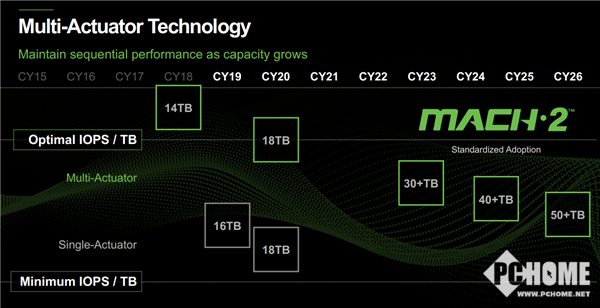 在未来,HDD硬盘也会大量使用MACH2技术,30TB是个开始,50TB问世的时候已经是标配了。