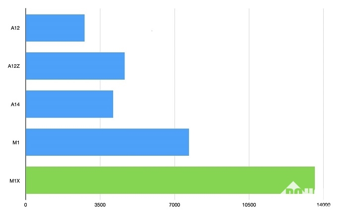 由推算图表可知,M1X的Geekbench多核成绩几乎达到了14000分,较锐龙R7-5800X/酷睿 i9-10900K都要领先许多。