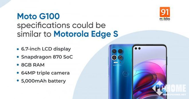 摩托罗拉Edge S会以Moto G100的全新身份登陆全球,因为先前Moto G10 Power和Moto G30已经在印度发布,所以这款产品也会在印度推出。