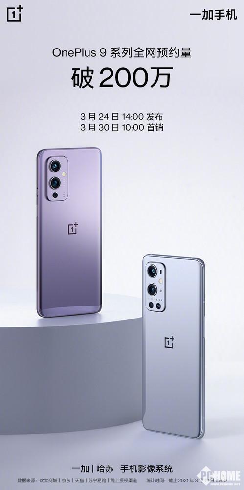 根据一加官方公布的数据,上述数据来自欢太商城、京东、天猫、苏宁易购、线上授权渠道,统计时间截止2021年3月19日15:00。从这些信息来看,一加9系列机型的受欢迎程度非常高,从开启预约到数据收集截止的短短时间内,就获得了200万台预约量的成绩。