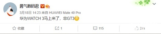 近日,数码博主@勇气数码君透露,华为Watch 3有望在近期发布。他强调这款手表并非华为Watch GT3。目前来看,华为有望在本月面向海外用户推出华为电脑新品, 4月27日举行华为高端平板的全球发布会,之后5月就是P50发布会。Watch 3手表可能会在其中一场发布会亮相。
