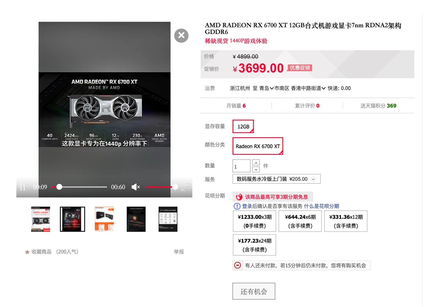 ·AMD RX 6700 XT也成空气卡 刚刚上架秒售罄