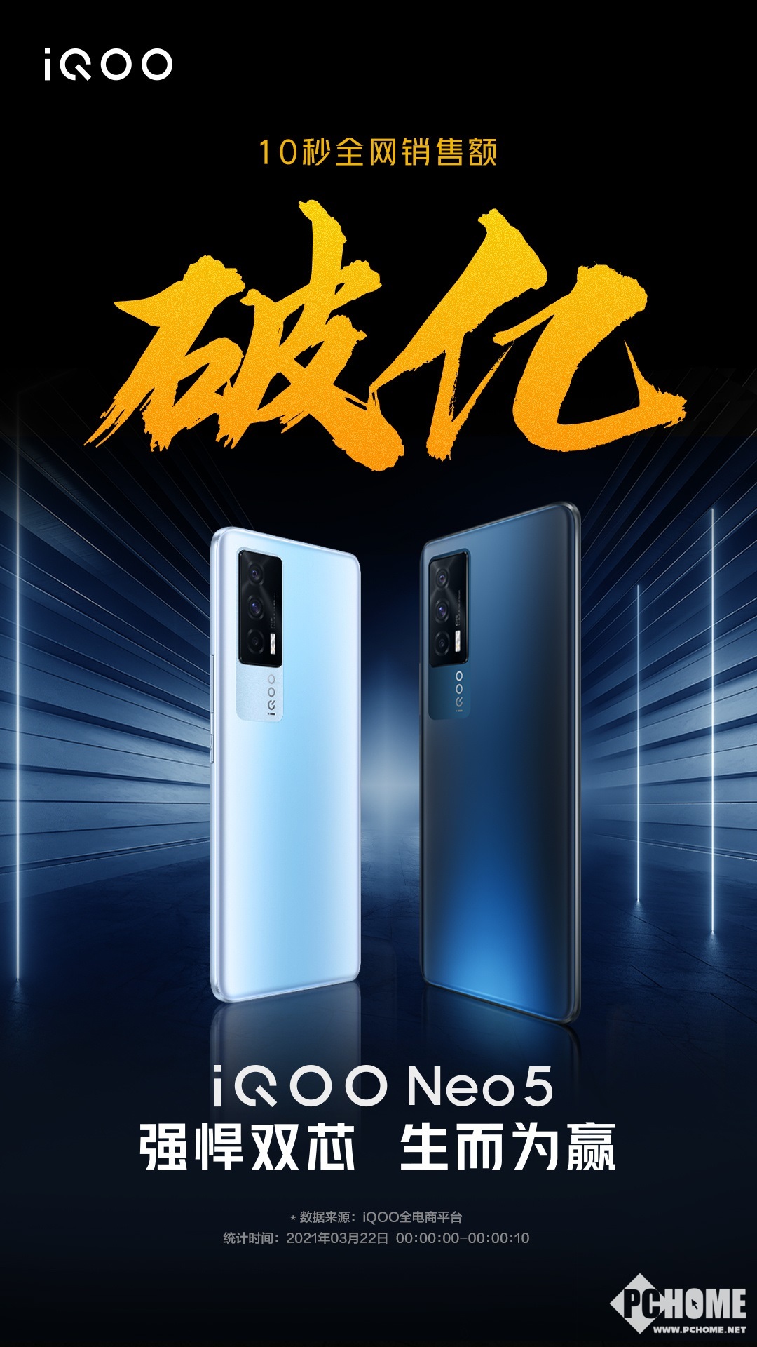 今日零点,iQOO Neo5正式开售,官方发文表示,仅用10秒,全网销售额便破亿!网友纷纷表示祝贺!