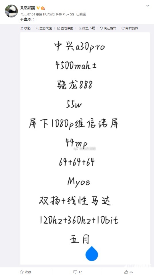 今日早晨,有数码博主爆出了中兴Axon 30 Pro的具体参数以及发布时间。