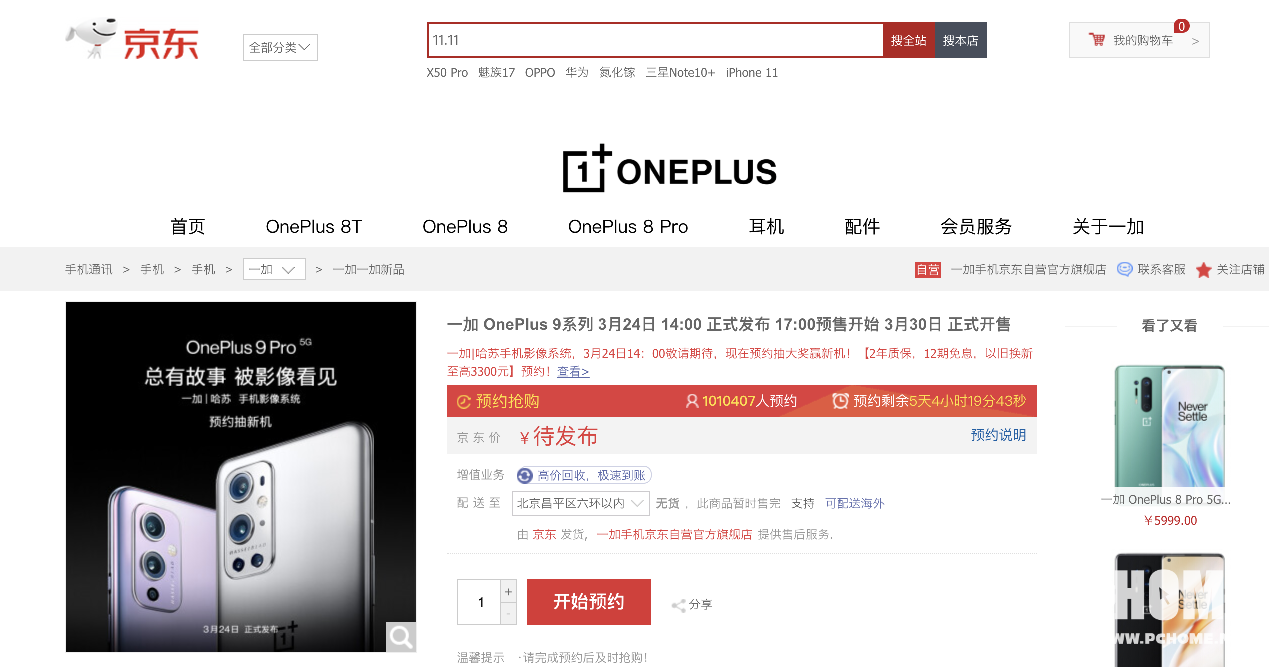 目前一加9系列手机已在京东预约人数已超过100万人,火爆程度可见一斑。