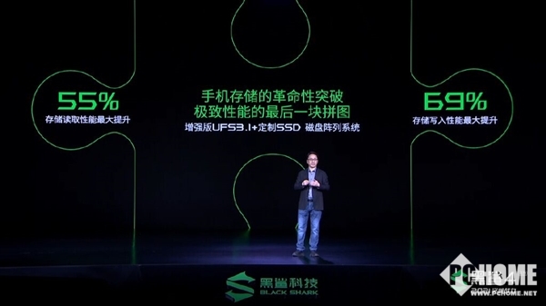 罗语周表示,这是黑鲨4 Pro首次使用增强版UFS 3.1+定制SSD磁盘阵列系统,这是手机存储的革命性突破,存储读取性能最大提升55%,存储写入性能最大提升69%。