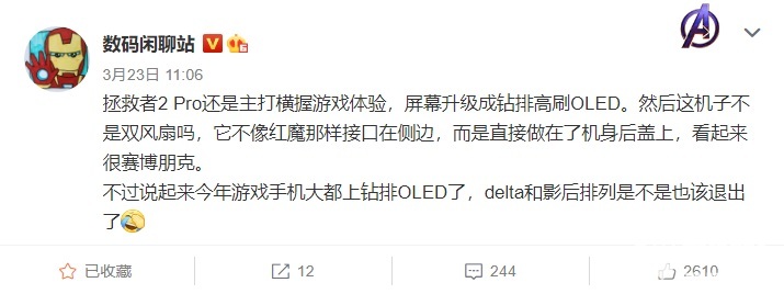 微博博主 @数码闲聊站 称,拯救者电竞手机 2 Pro 还是主打横握游戏体验,屏幕升级成钻排高刷 OLED。双风扇不像红魔那样接口在侧边,而是直接做在机身后盖上,看起来很赛博朋克。