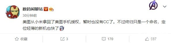 说起小米CC9系列手机,相信很多米粉心中都会想起这款亮点很多的机型,对包括该机的拍照能力、性能等方面都比较满意。不过,之后很长一段时间,都没有看到小米推出CC系列的新机。3月26日,微博博主@数码闲聊站 发文爆料称,美图手机的授权被拿回,暂时也就没有CC了,不过终究只是一个命名,定位轻薄的新机也快了。