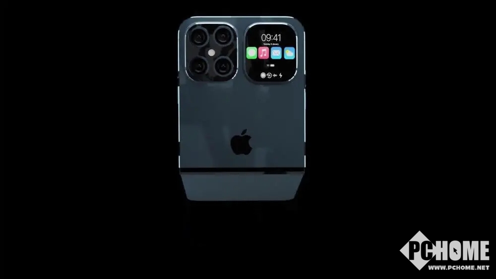 折叠手机的关注度还是比较高的,苹果自然也不会放过这个商机。最近,又有最新的苹果折叠手机渲染图曝光了,这次苹果将刘海屏变成了全面屏,手机背后还置有一块小副屏。