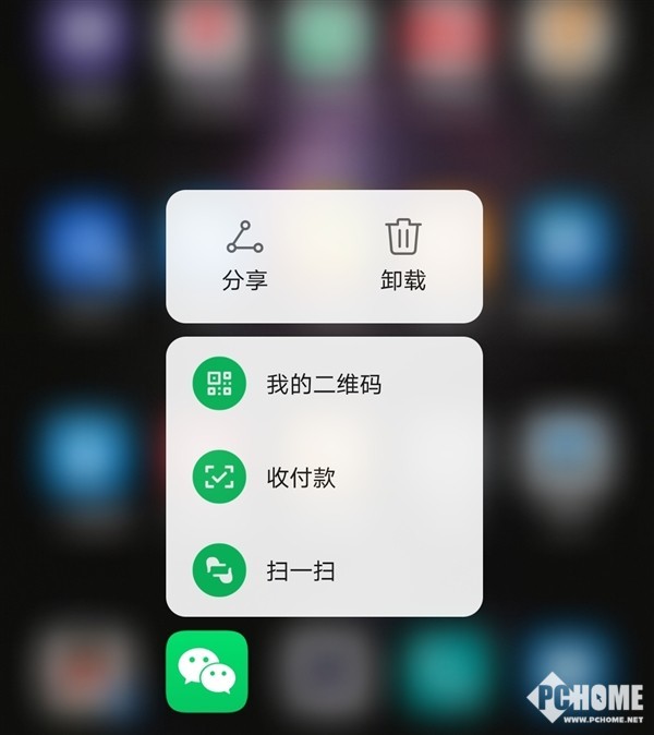 2、桌面图标长按会弹出快捷菜单,包括我的二维码、首付款、扫一扫三个快捷选项。