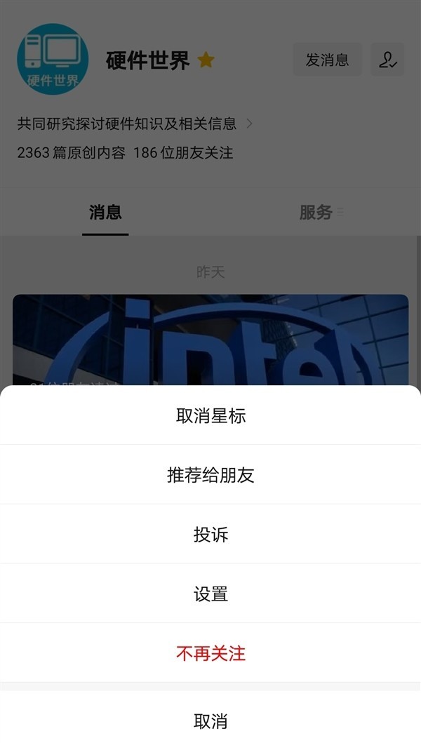 3、公众号取关新方式,可以点击公众号主页右上角三点,在弹出菜单中选择,或者点击人物图标。