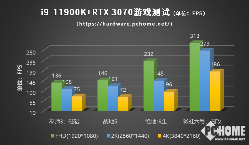 最后,这四款游戏的具体性能表现如上图所示。首先可以肯定的是,酷睿i9-11900K+GeForce RTX 3070的组合,绝对是一套性能出色的游戏平台。得益于十一代酷睿先进的核心架构和高主频带来的优势,以及RTX 30系列显卡强劲的运算能力与光线追踪性能,这套配置下这几款游戏的体验都是非常出色的。在FHD分辨率与2K分辨率下是轻松加愉快,可以获得超流畅的游戏体验,即使是在4K分辨率下,这四款游戏也都能在最高画质下实现60FPS以上的丝滑体验。