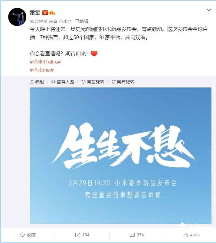 小米全球春季发布会将于今晚19点30分正式举行,有7种语言,超过50个国家,91家平台,共同观看,观众们都非常的期待,这可以说是一场史无前例的小米新品发布会。
