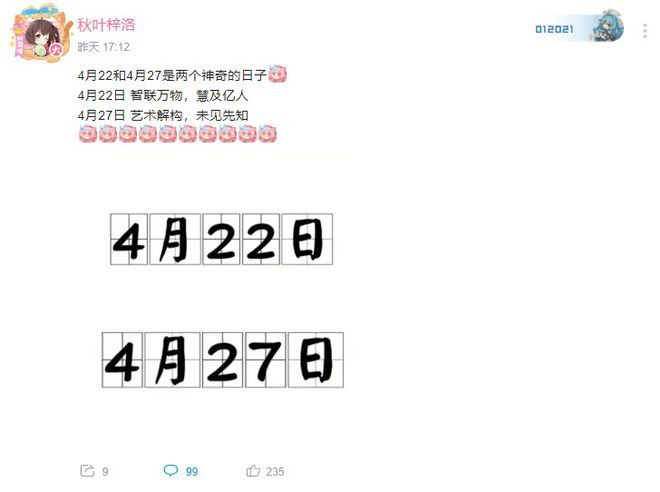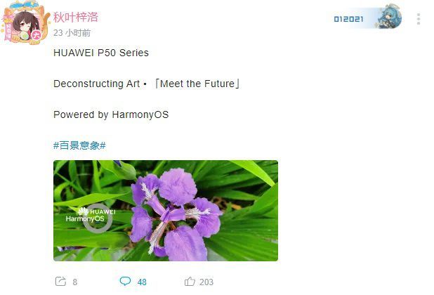 值得一提的是,@秋叶梓洛 除上述内容外还发了一条跟运行 HarmonyOS 的华为 P50系列有关的内容,是英文释义的 “艺术解构,未见先知 ”,即对应上述第二个发布会,不排除华为将于4月27日举办华为 P50系列海外发布会的可能(此前消息称华为 P50系列将于5月发布,或指国内发布)。