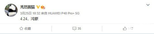 此外,数码博主 @菊厂影业 Fans曾透露 华为将于4月24-26日举行华为 HDC 开发者大会,华为鸿蒙系统随之而来。@秃然熊猫 也表示,华为鸿蒙有望于4月24日到来。